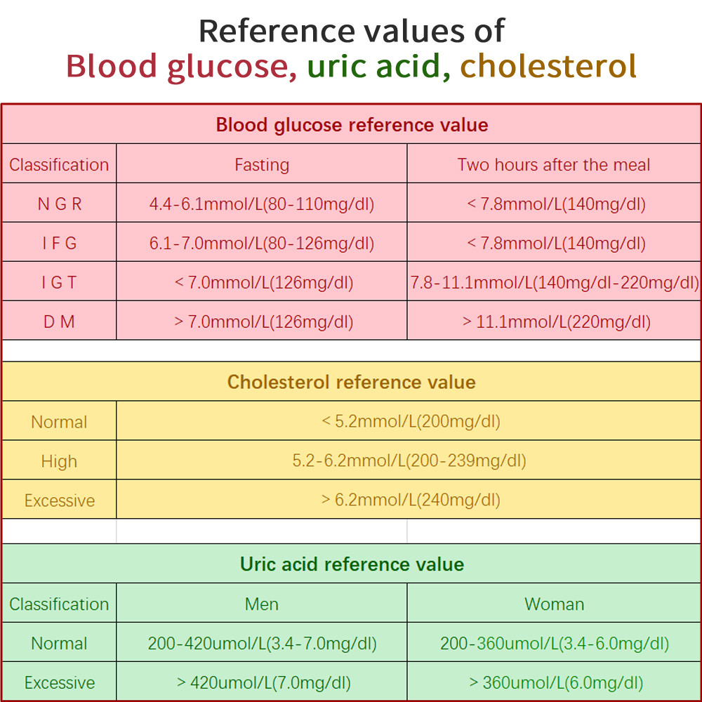 - Test Types: Blood Glucose, Uric Acid, Cholesterol