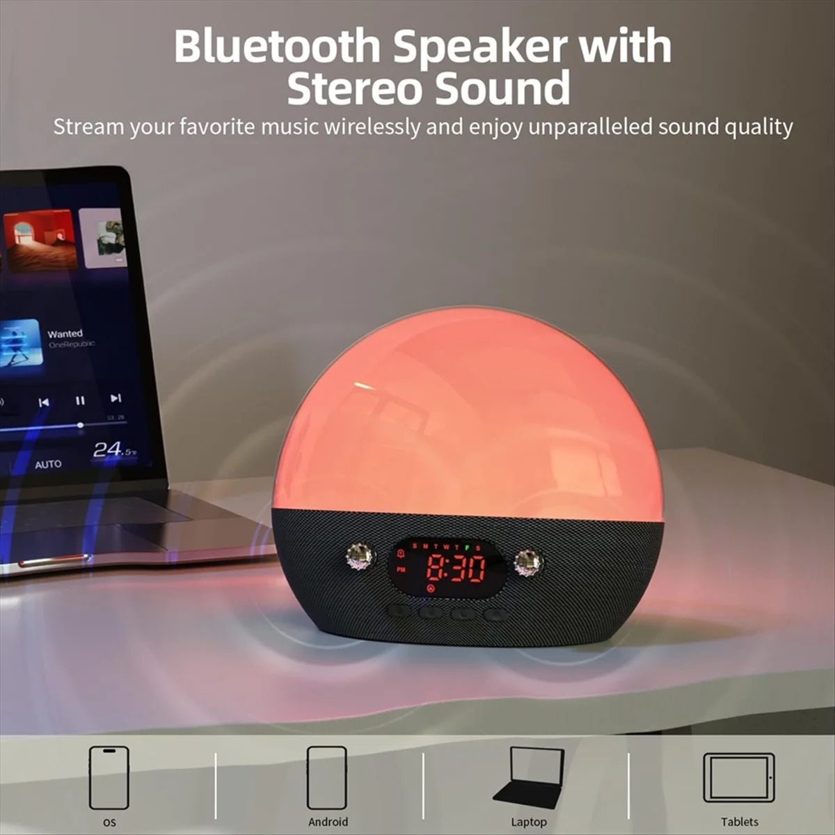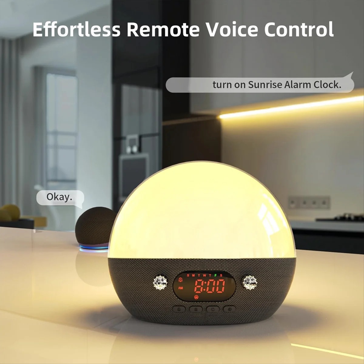 - Gradually brightens your room over 5-120 minutes before your set alarm time.