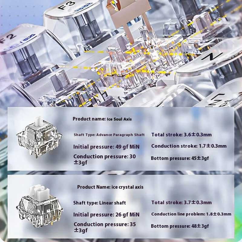 This mechanical keyboard has seriously upped my productivity game. The transparent keycaps look awesome and the wireless feature is a game changer. I can easily switch between devices without any hassle. The RGB lighting adds a cool vibe to my workspace. Definitely recommend it for anyone looking for a sleek and functional keyboard.