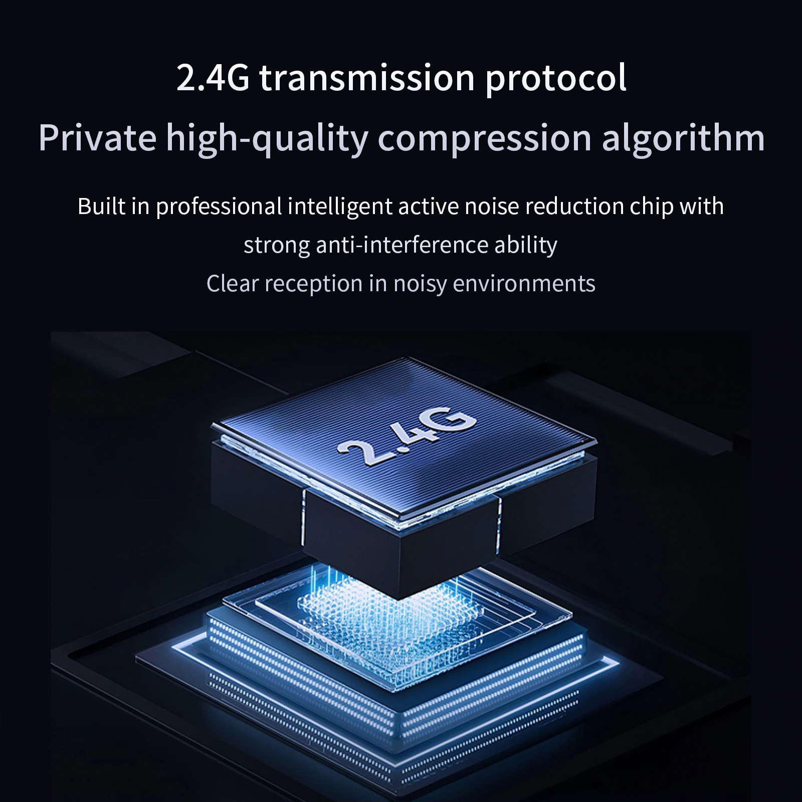• Say goodbye to lag and interference. The 2.4G transmission protocol, paired with a proprietary compression algorithm, guarantees stable, clear, and consistent audio signals even in noisy environments.