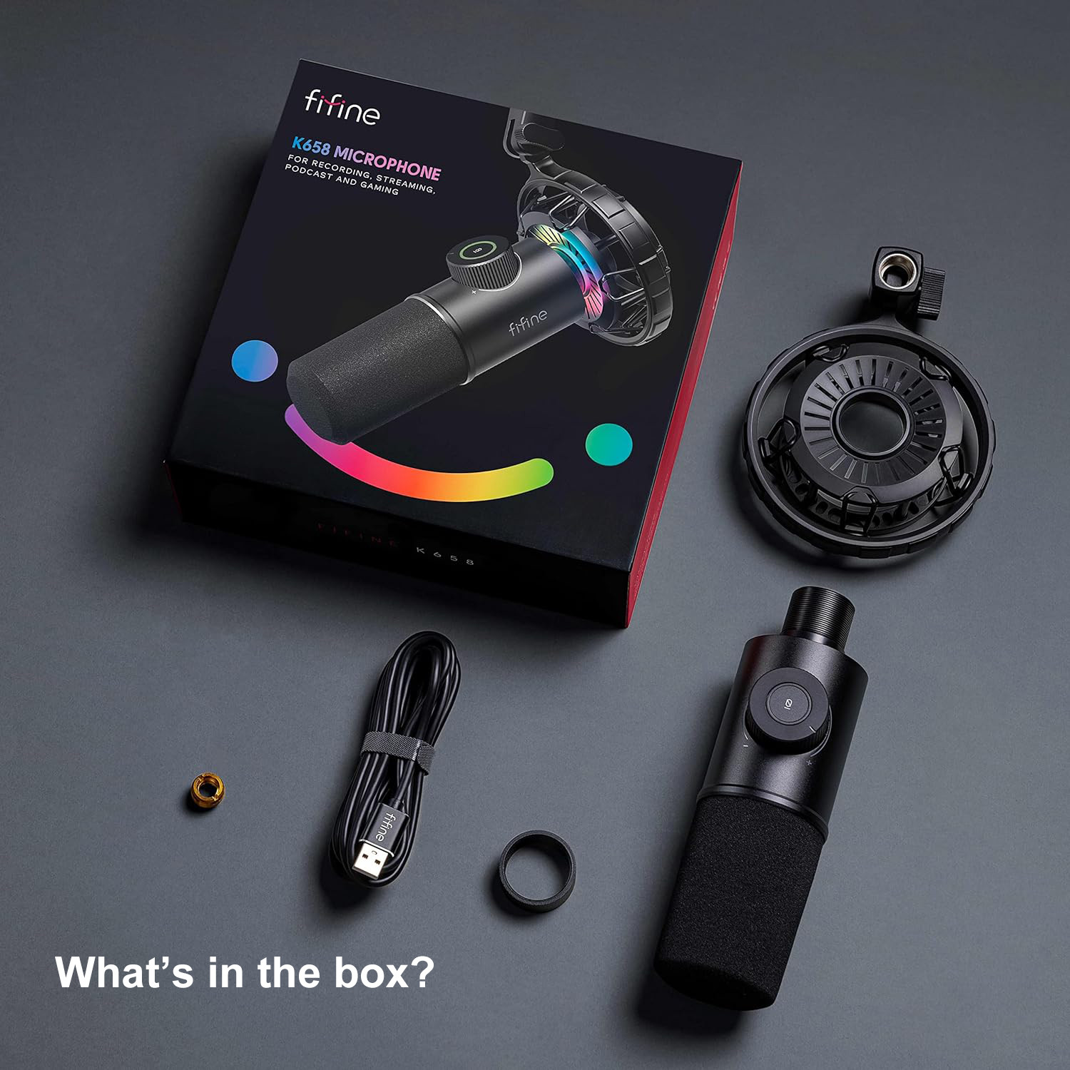 With rich dynamic sound, instant controls, and eye-catching RGB, the FIFINE K658 is your all-in-one mic for performance, personality, and pro-grade audio.