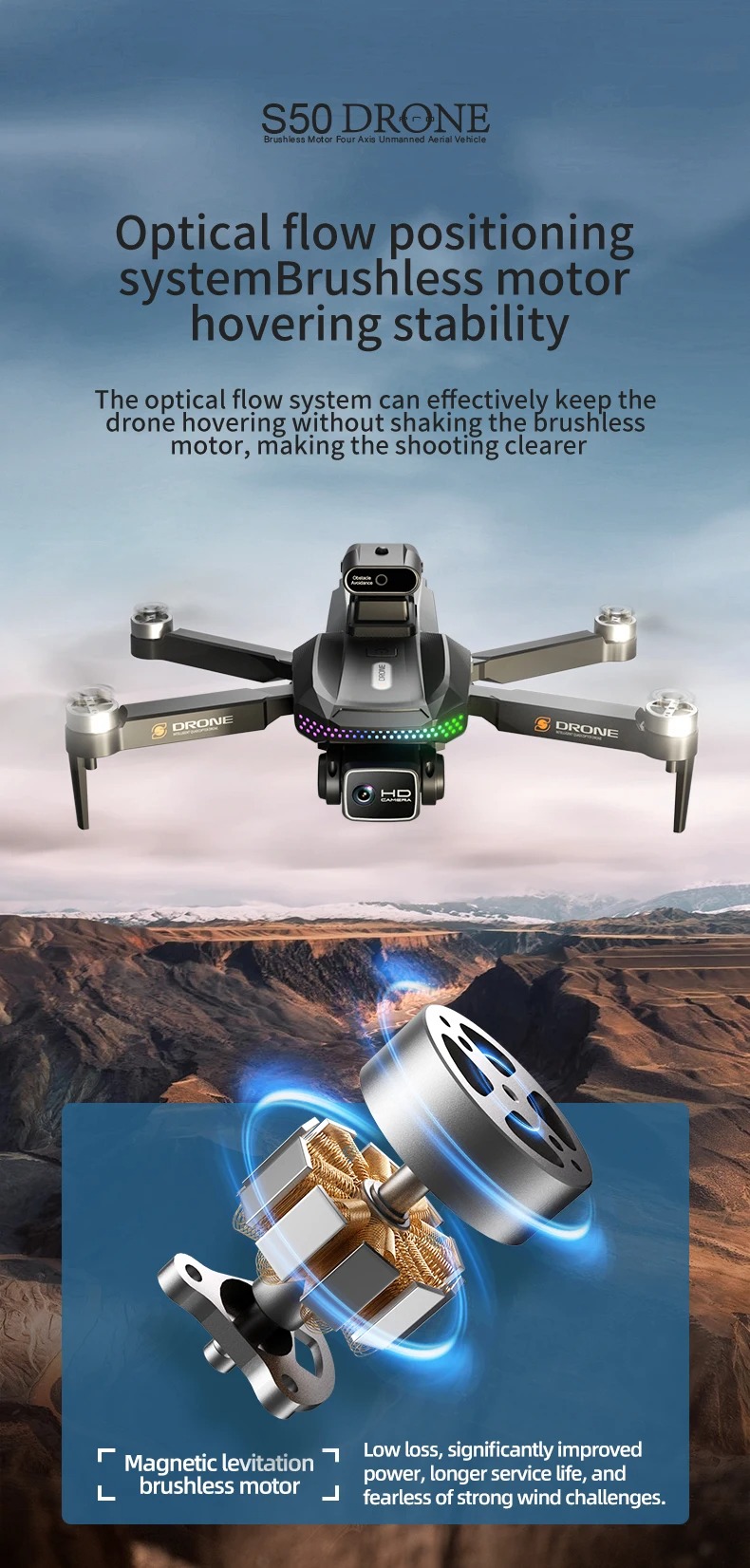 Achieve steady flight and precise hovering, making it easier for beginners to control and frame their shots without drift.