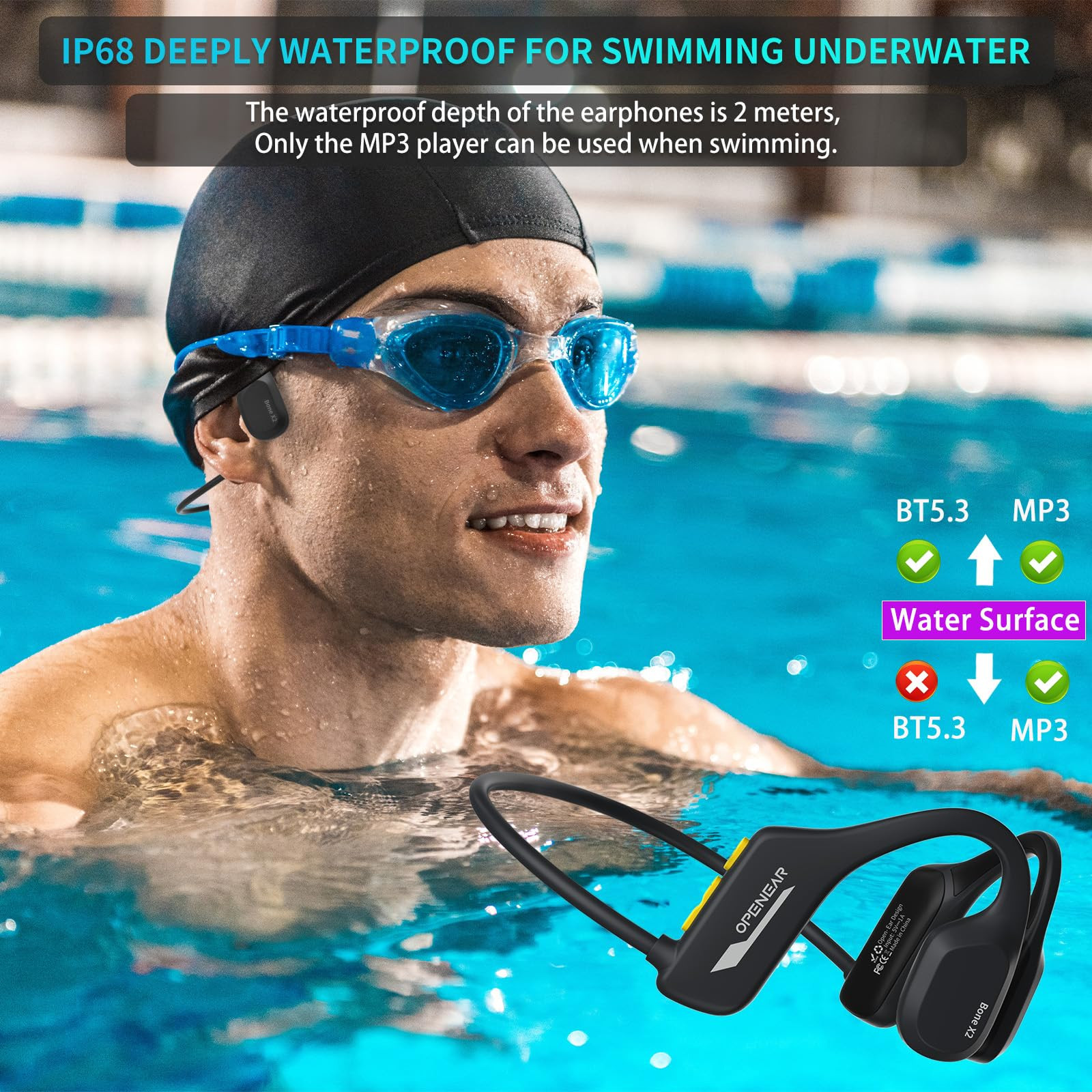 Built to handle intense sessions and the elements, the IPX78-rated design is sweatproof and rain-resistant. Lightweight ABS and titanium materials ensure comfort and durability.
