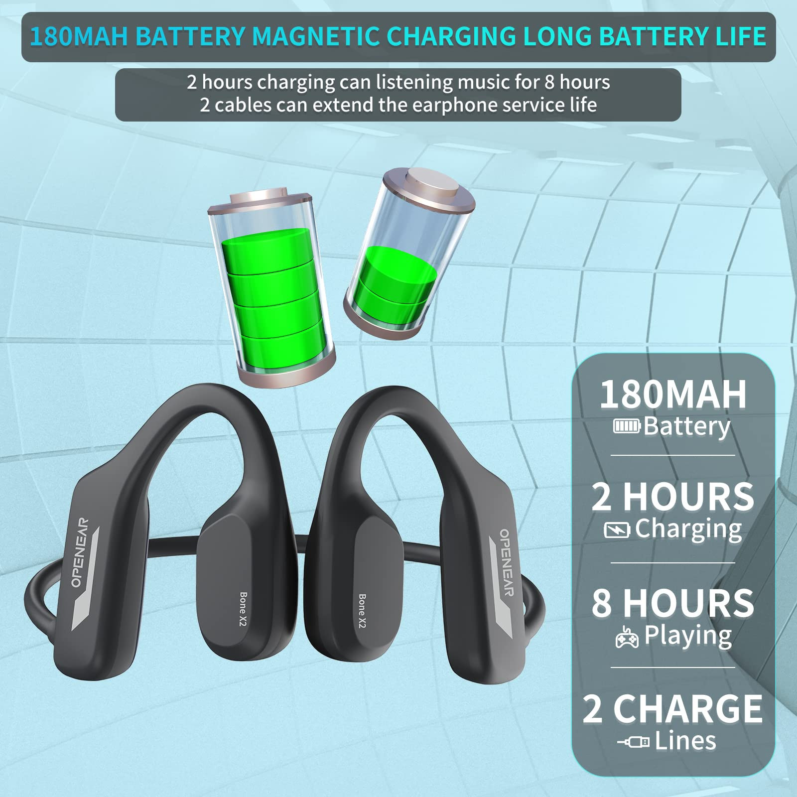 Enjoy over 8 hours of continuous playback on a single charge. If you’re short on time, a 15-minute quick charge gives you up to 2 hours of use with the included magnetic charging cable.
