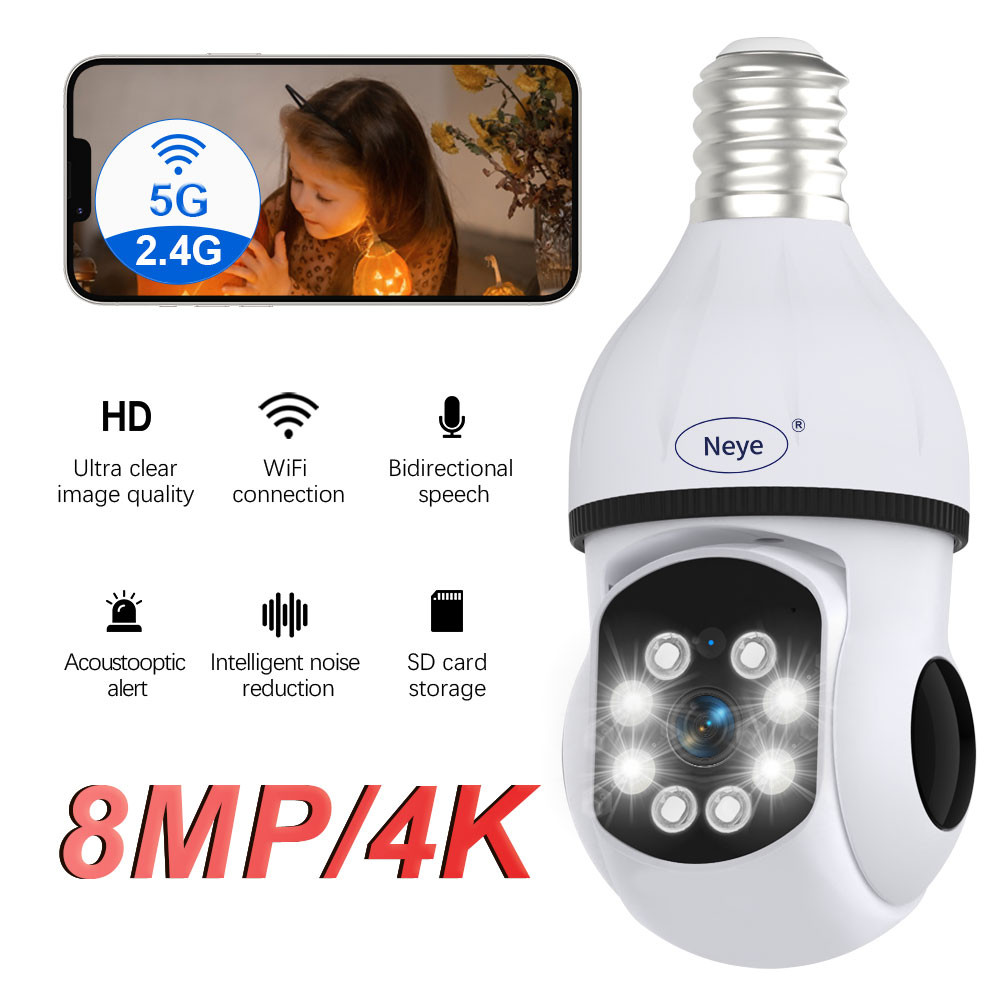 Introducing the Wireless 5G WiFi Bulb Camera, the perfect blend of cutting-edge surveillance technology and discreet design. This innovative camera combines the functionality of a high-definition security system with the subtle appearance of a light bulb, providing comprehensive monitoring without compromising your home’s aesthetics. With its 8MP 4K resolution, 360° coverage, LED flicker sensor, night vision, and smart home integration, this camera is your ultimate solution for modern security needs.
