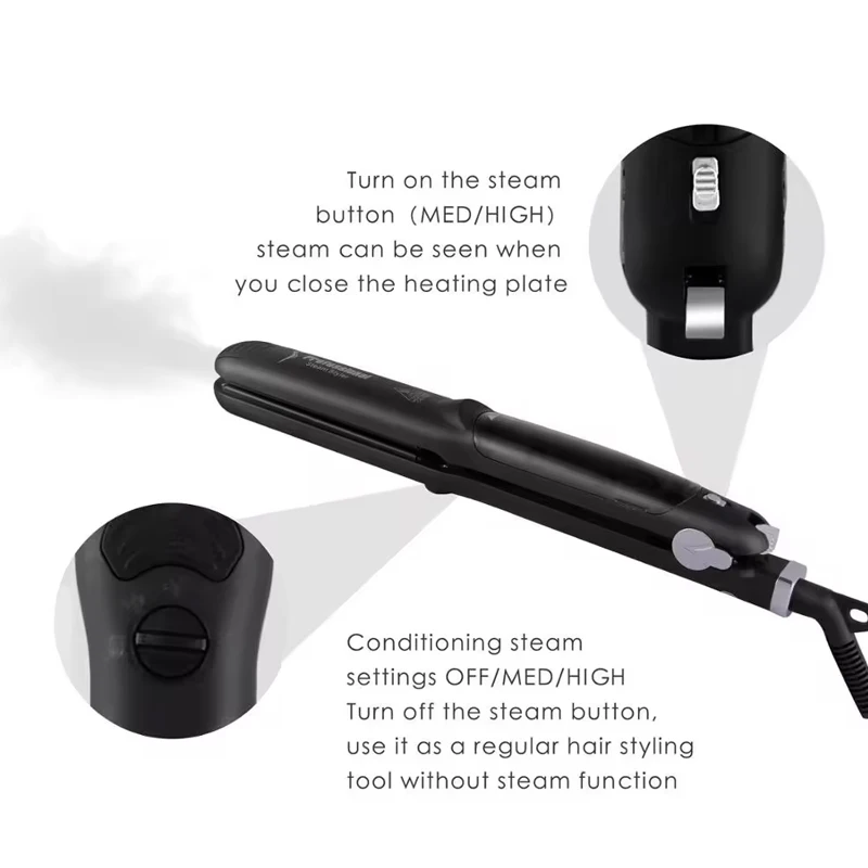 Integrated steam output helps lock in moisture, reduce frizz, and deliver smoother, healthier-looking hair with every glide.