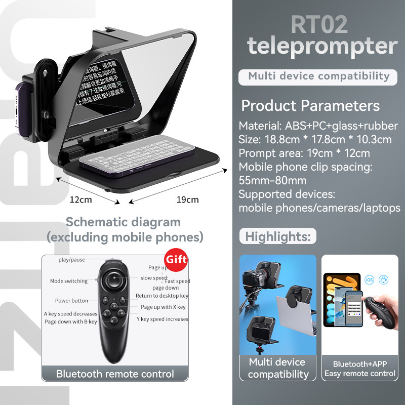 Take your live streaming, video recording, and content creation to a whole new level with the Ulanzi RT02 Universal Teleprompter. Designed to seamlessly integrate with DSLR cameras, smartphones, tablets, and laptops, this teleprompter is the ultimate tool for professionals and creators looking to enhance their presentation skills and production quality.
