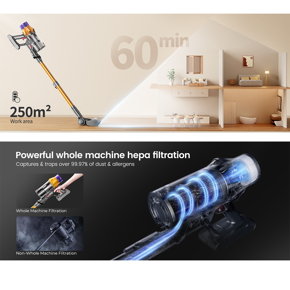 ?️ 550W Brushless Motor – Delivers up to 45Kpa of strong suction to clean carpets, hardwood floors, and tight corners with ease.